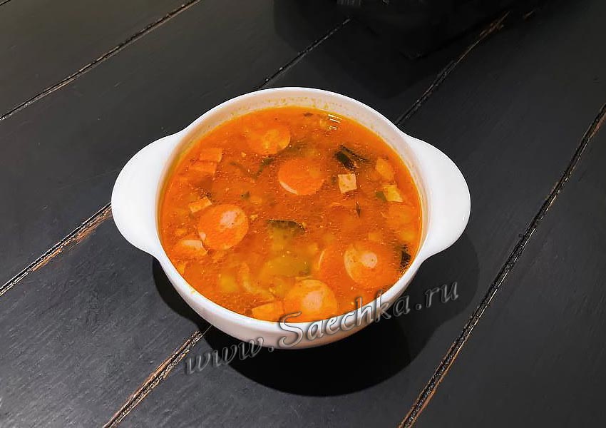 - Соединить соус с овощами и варить суп "Айнтопф" в закрытой посуде до готовности.