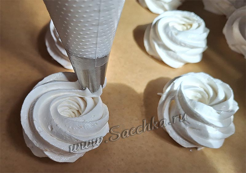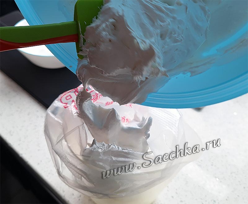 - Переложить получившуюся массу для зефира в кондитерский мешок с крупной насадкой.
