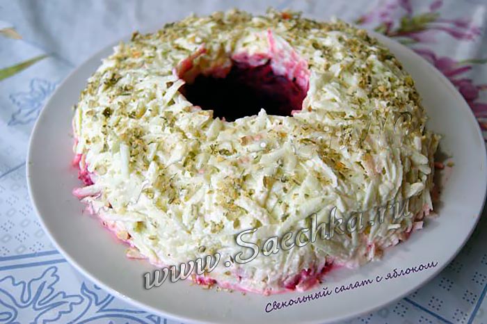 Лёгкий диетический салат из свёклы с яблоком приготовлен слоями, хорош к ужину.