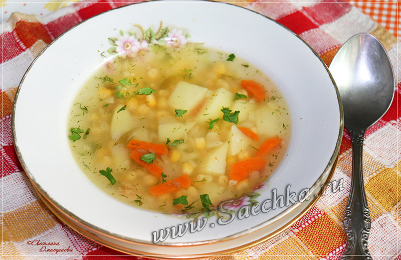 «Солнечный» суп с пшеном и кукурузой