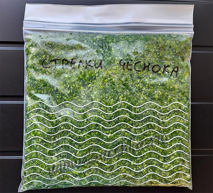 - Замороженные стрелки чеснока зимой очень хорошо отламываются в нужном количестве, если их не морозить комом, а плоско раскладывать по пакетикам.