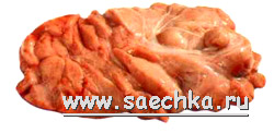 Зобная железа считается деликатесом и стоит дороже других субпродуктов. Она регулирует рост теленка, а с возрастом становиться меньше. Железа состоит из одной большой части, которая весит 300-500 г и цениться гурманами и второй маленькой части, которая весит 200-250 г. С железы нужно снять кожицу и удалить остатки крови. Для этого её сначала вымачивают в воде не меньше двух часов, а потом её нужно обдать кипятком и через 10 минут снять кожицу. Подготовленную таким образом железу можно варить, тушить, жарить, запекать.