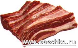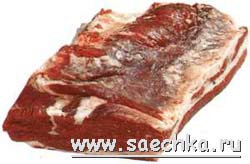 Грудинка - костистая часть, где вперемешку идут слои мяса со слоями жира и пленкой. Грудина (грудная кость и ребра) находятся в передней части грудинки. В задней части находятся хрящевые концы ребер. Грудину можно тушить нарезав ломтиками или отделить от костей для рулетов с фаршем.