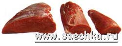Задняя часть верхнего куска или щуп - очень нежное мясо. С внутренней части бедра мясо тонковолокнистое и прекрасно подходит для приготовления (высочайшего качества) эскалопов большого размера.