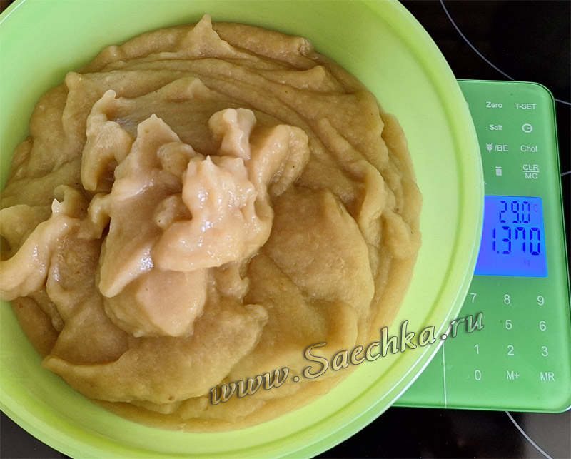 - Вот тут я взвесила: у меня получилось почти 1,4 кг яблочного пюре: