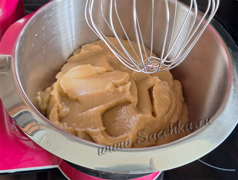 - На следующий день охлаждённое яблочное пюре взбить миксером около 10 минут: