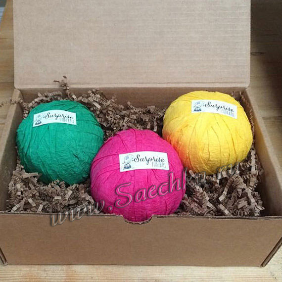 Такой способ упаковки подойдет для небольших по размеру подарочков. Вам понадобится гофрированная бумага, ножницы и немного клея или скотча. Разрежьте гофрированную бумагу на максимально длинные полоски шириной 5-6 см и начинайте обматывать презент, стремясь придать ему форму шара. Украсить шар можно лентой, бантом, искусственным цветком, карточкой с именем получателя или же раскрасить его в виде футбольного мяча или привязать длинную веревочку и подарить, уверяя, что это воздушный шарик, который неожиданно потяжелел, а можно украсить его таким образом, чтобы шар напоминал пирожное. Можно также соорудить два шарика поменьше, приклеить к нижнему – самому большому – и подарить небольшого снеговичка.
