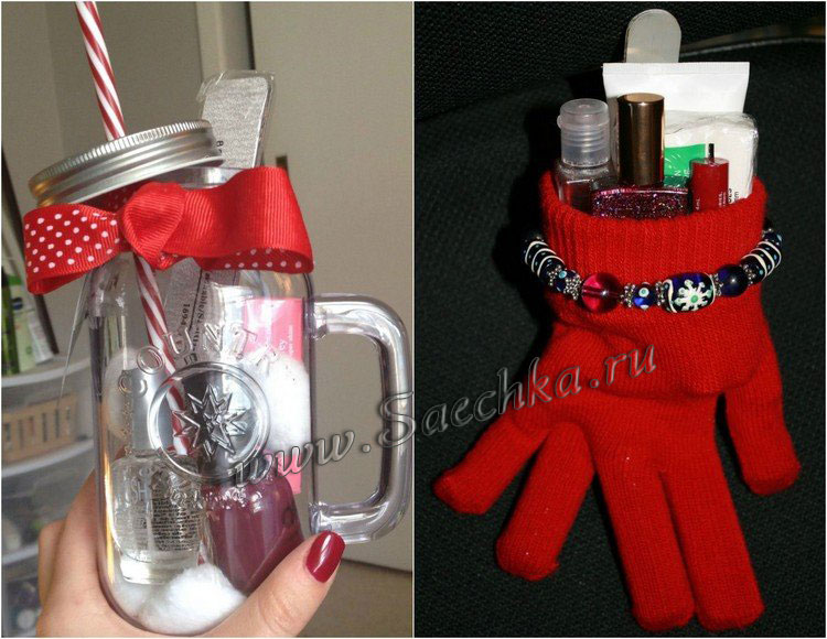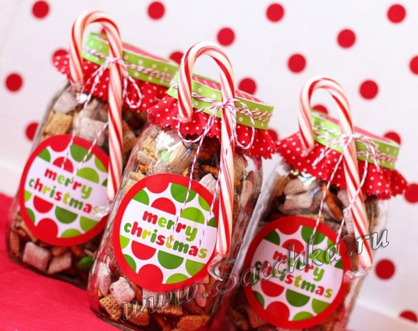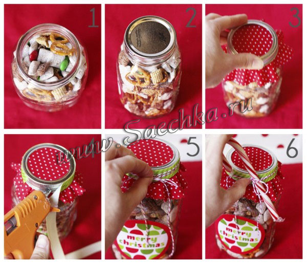 Можно еще в качестве новогоднего подарка украсить обычную кружку или подарить, например, смесь для печенья.
