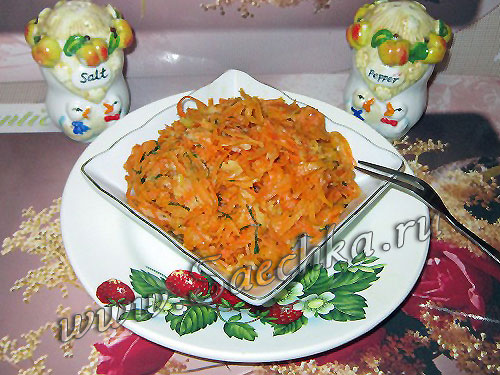 - Тертую морковь слегка обжарить на растительном масле (совсем чуть-чуть масла) 5-7 минут.