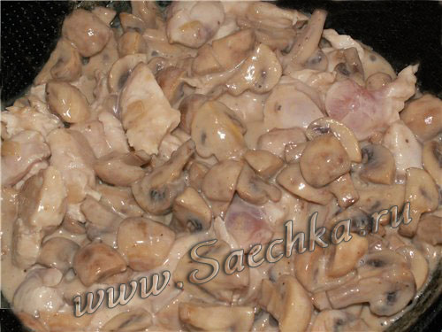- Перемешать грибы с этой "замазкой". Грибы должны не плавать, а быть все смазаны в этом соусе.