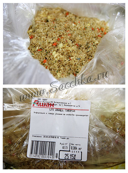 Вот! Это был он! Только продаётся на вес. Название "овощной суп с макаронными изделиями", изготовитель мне не известен, цена 82 руб. 73 коп. О, какой я ленивый суп сварганила ровно за 10 минут!