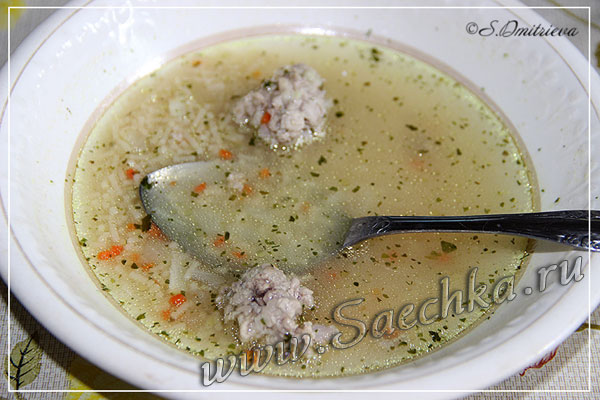- Затем отщипывала от индюшачьего фарша кусочки, формировала из них фрикадельки и сразу закидывала их в кипящую воду.