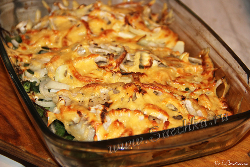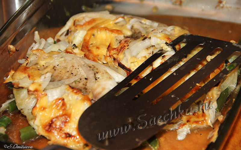 - И поставила рыбу с овощами и сыром в горячую духовку до готовности. Готовится быстро.