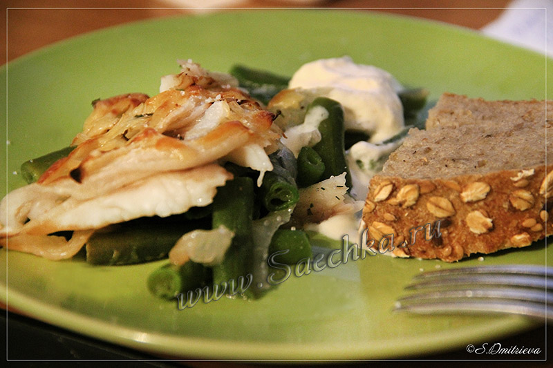 - При подаче добавила ложку сметаны и перемешала с фасолью.