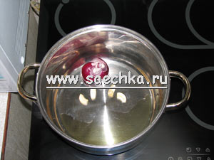 - ...положить разрезанную пополам луковицу и порезанные дольки чеснока.