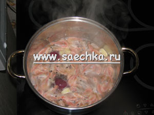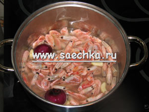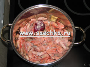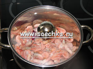 - За количество воды можно не беспокоиться: вода еще от замороженных креветок появляется :)