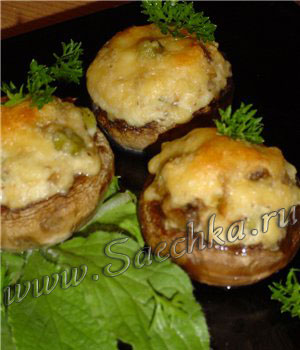 Грибы, фаршированные сыром и курицей