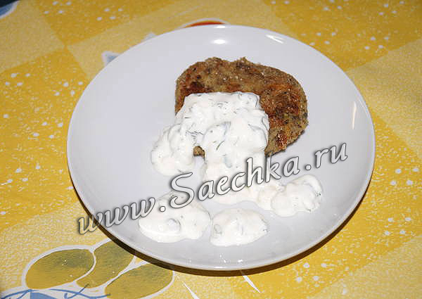 Т.к. я их делала вне поста, то подала котлеты из грибов со сметаной, чесноком и мелко нарубленной зеленью.