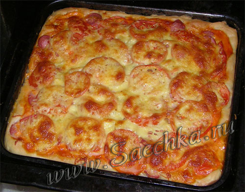 - Запекать до тех пор, пока немного подрумянится корочка. Пицца готова!