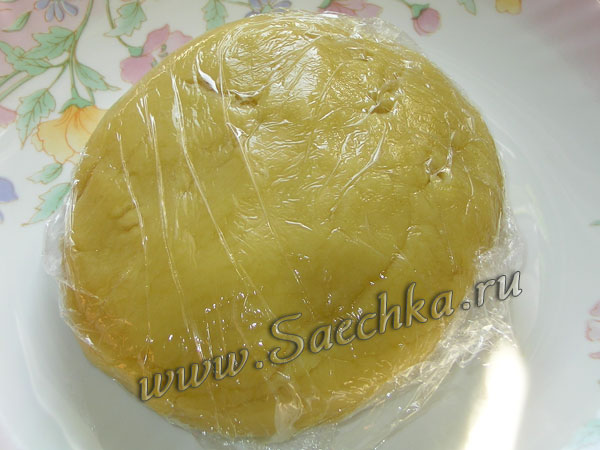 - Тесто положить под пищевую плёнку, чтобы остывало.
