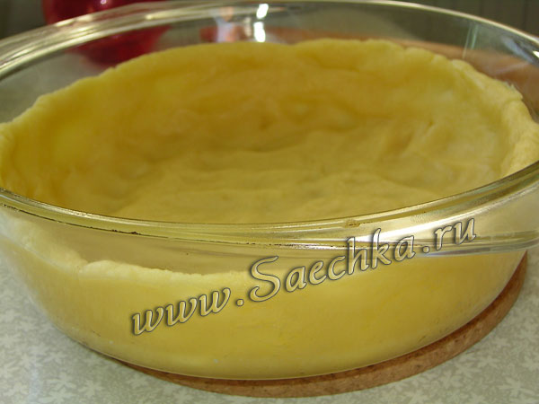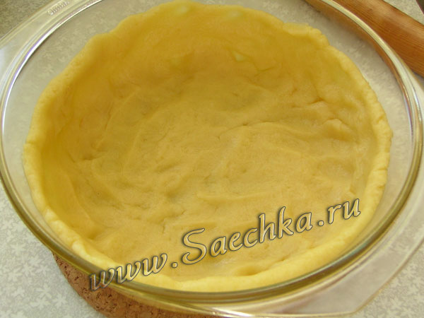 - Форму смазать маслом и 2/3 теста раскатать в форме.