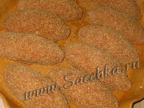 - Слепить все зразы, хорошо их обваливая в сухарях.
