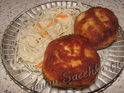 - Сформировать круглые котлетки и обмакнуть их в яйце с молоком, потом обвалять в сухарях.