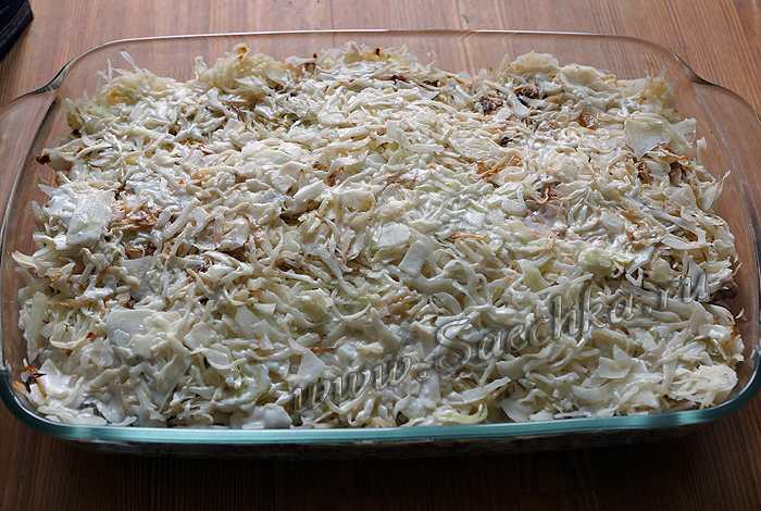 - Заливаем наши будущие ленивые голубцы майонезом или сметанным соусом.