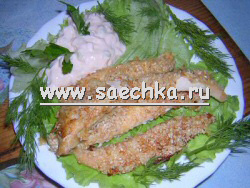 - Запанируйте куриные палочки в мучной смеси, затем во взбитом яйце и посыпьте кунжутом.