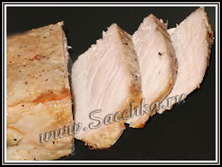 - Мясо получится очень сочное и, возможно, будет иметь розоватый оттенок в самой середине.