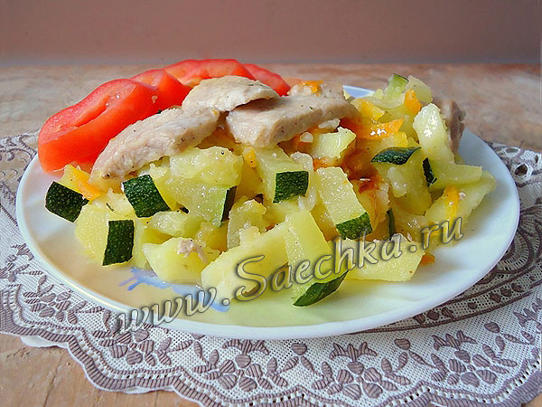 А про этот рецепт я узнала у нас здесь, кажется, у Оли - она говорила, что потушила картофель с кабачками и мясом. Я не тушила, а жарила в мультиварке. Получилось невероятно вкусно! Я бы даже и без мяса съела!