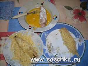 - Котлету обвалять в муке, затем во взбитом яйце и, сложив руки лодочкой, разложить равномерно по всей котлете натертый картофель, уплотняя руками до толщины 3-5 мм (картофель добавлять постепенно).