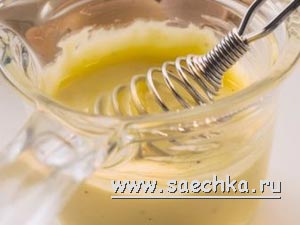 - Затем понемногу добавлять растительное масло до получения однородной смеси.