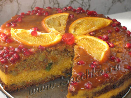 - Украсить по желанию (у меня гранат и апельсин). А потом кушать овощной торт и наслаждаться!