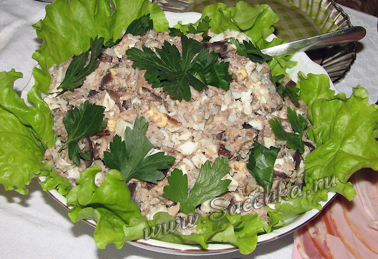 Можно этот рыбный салат подавать как в горячем, так и в холодном виде, т.к. приготовлен он без майонеза.