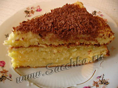 - Для начала выпекаем бисквит. Желтки взбить с сахаром до бела, белки в крутую пену. Соединить обе массы и осторожно перемешать. Затем добавить муку и вымесить тесто. Выпекать 30 минут.