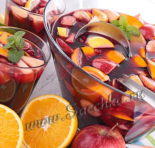 - Перед подачей всё перелить в крюшонницу, добавить шампанское и, если это еще необходимо, сахар по вкусу.