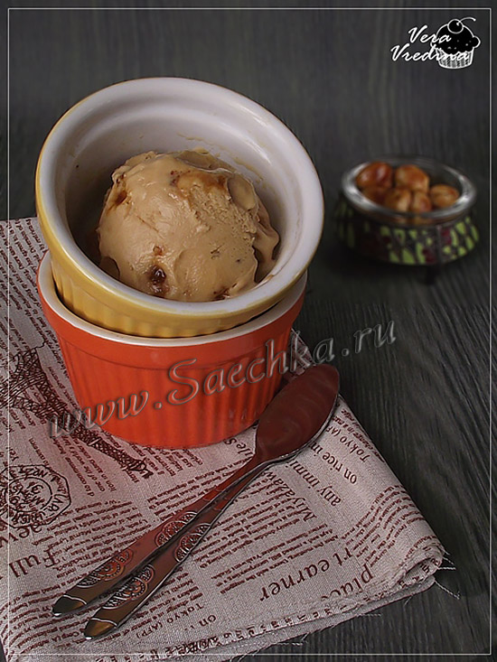 У меня сегодня потрясающее лакомство - домашнее мороженое из сгущёнки с пралине из фундука.