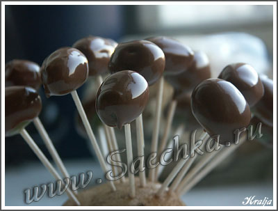 - В расплавленный шоколад окунать нанизанные на зубочистки виноградины. Годятся так же ломтики любых фруктов.