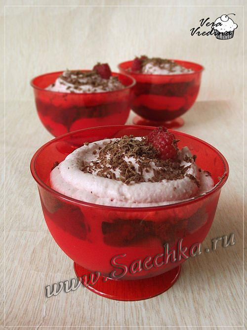 Пудинг приготовлен с воздушным кремом и ягодной начинкой.
