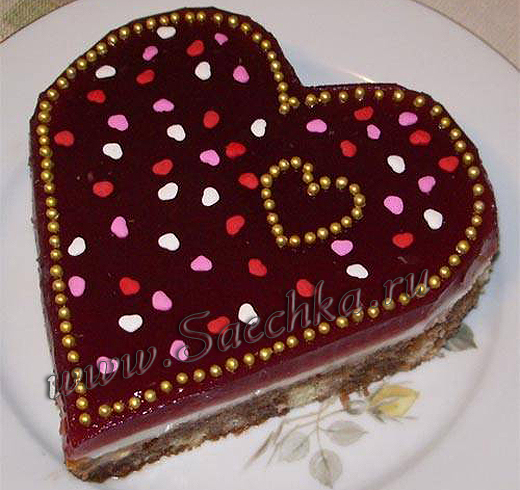 Желейный торт-валентинка приготовлен на 14 февраля для любимого.