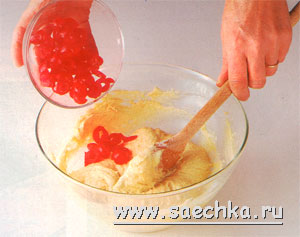 Норма указана для теста на 3 яйцах. При необходимости увеличьте количество добавки: - Вишни — 175 г (1 чашка) засахаренных вишен, разделенных на половинки.