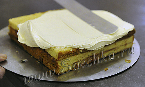 - Ровным слоем нанесите глазурь на торт металлическим ножом-лопаткой (шпателем). Вот такой несложный рецепт масляной глазури.