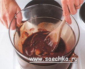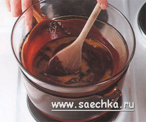 - Поместите шоколад и масло в миску из жаропрочного стекала и поставьте ее на кастрюлю с горячей водой.