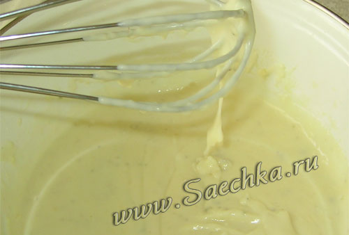 - Готовый соус бешамель процедить через сито и взбить до получения пены, добавив лимонный сок.