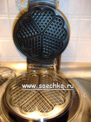 - Разогреть вафельницу, как написано в инструкции к ней.