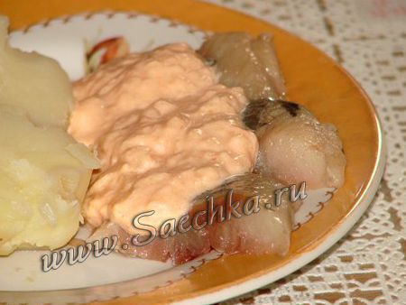 Соус со сметаной и кетчупом очень хорош к рыбе.