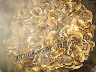 - 1 чашка очищенных и тонко нарезанных шампиньонов,