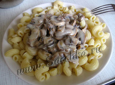 Получается очень вкусный грибной соус, который можно применять как к мясным блюдам, так и к макаронам.