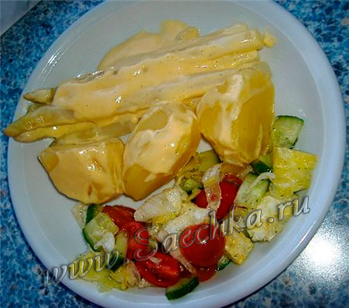 - Держать на водяной бане до последней минуты, чтобы голландский соус не свернулся.